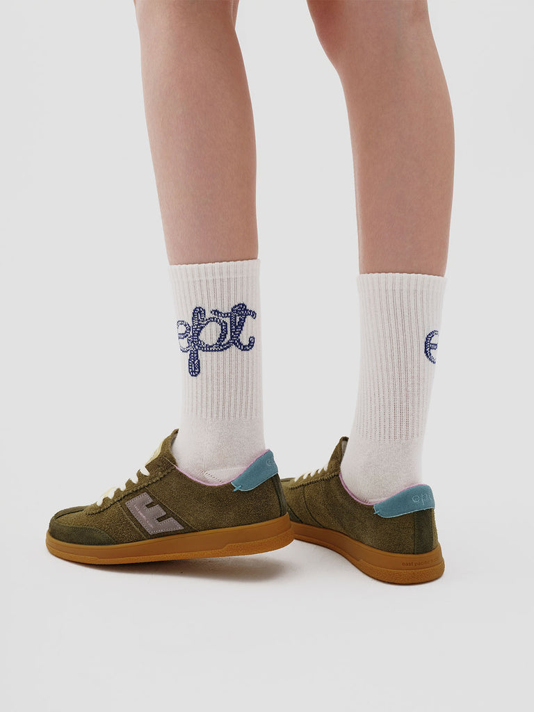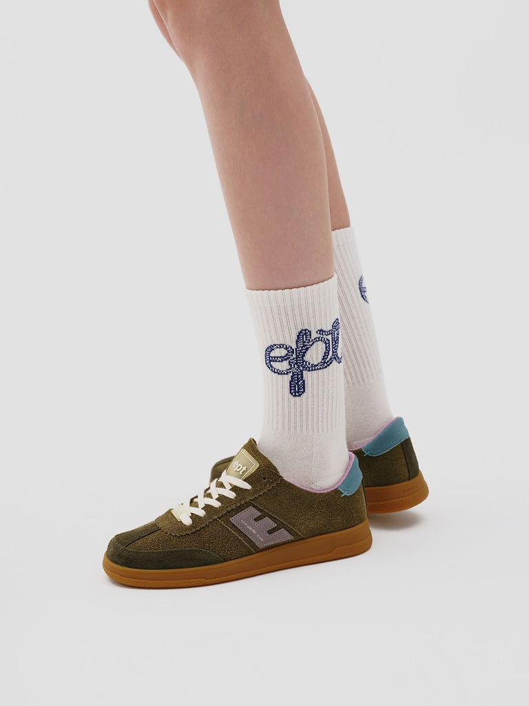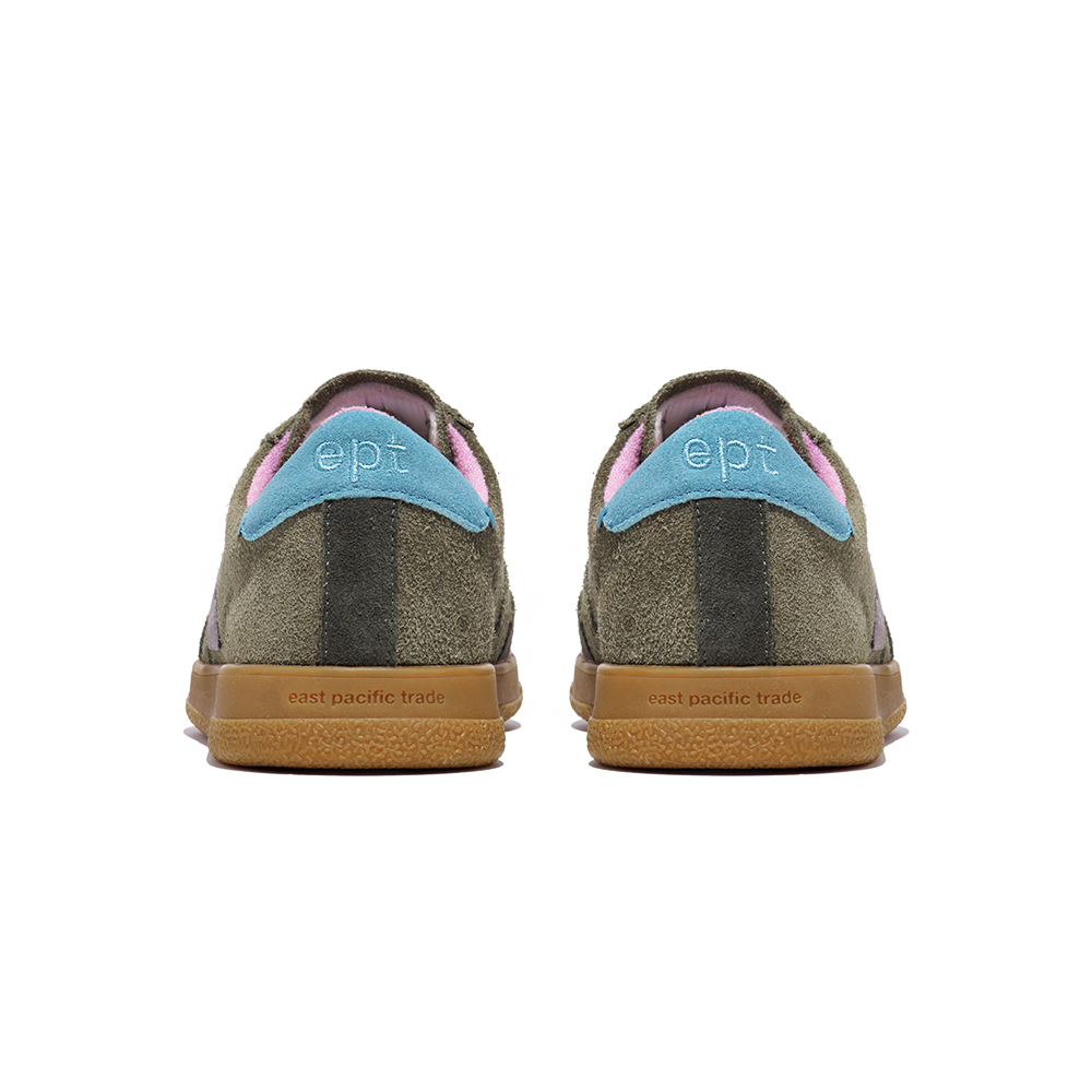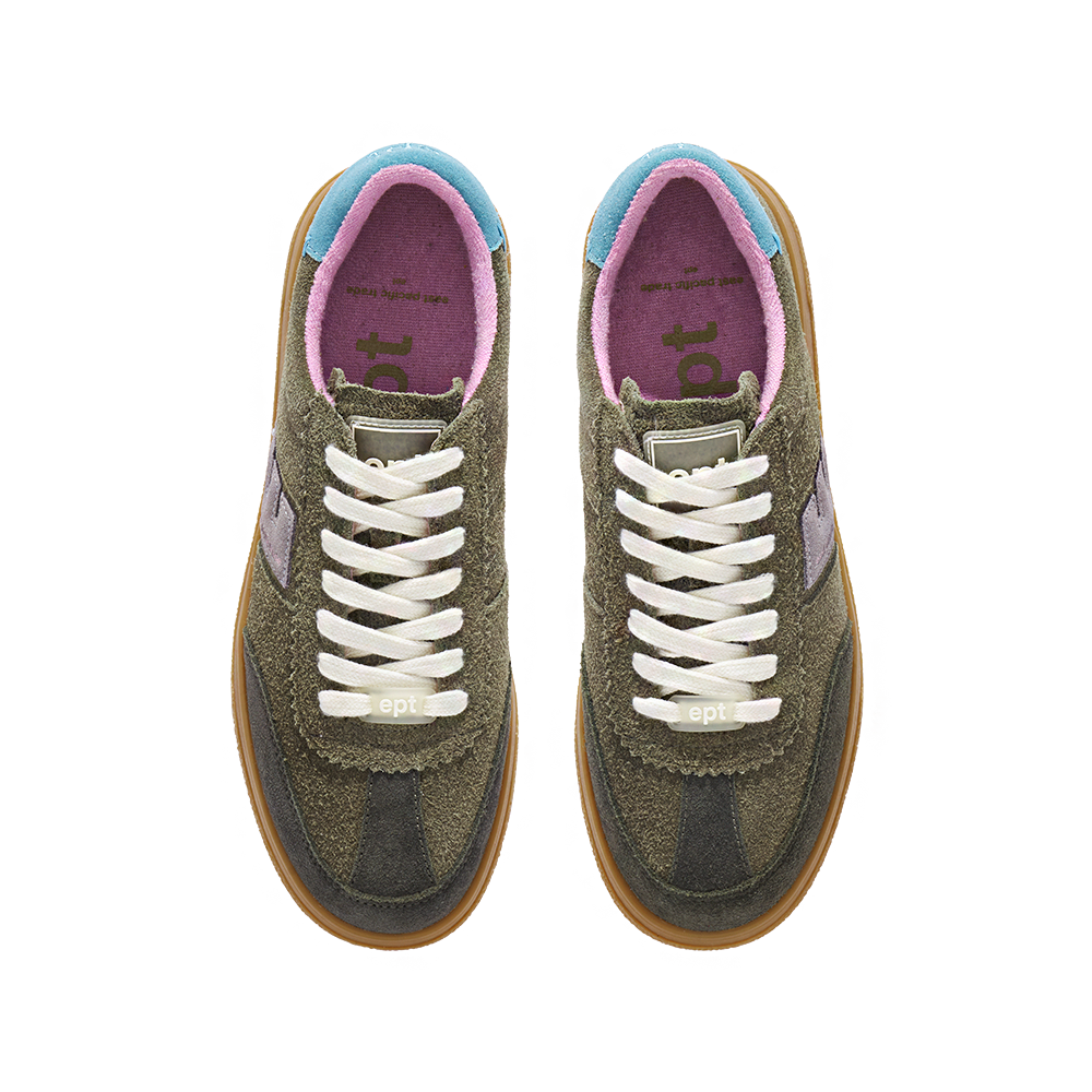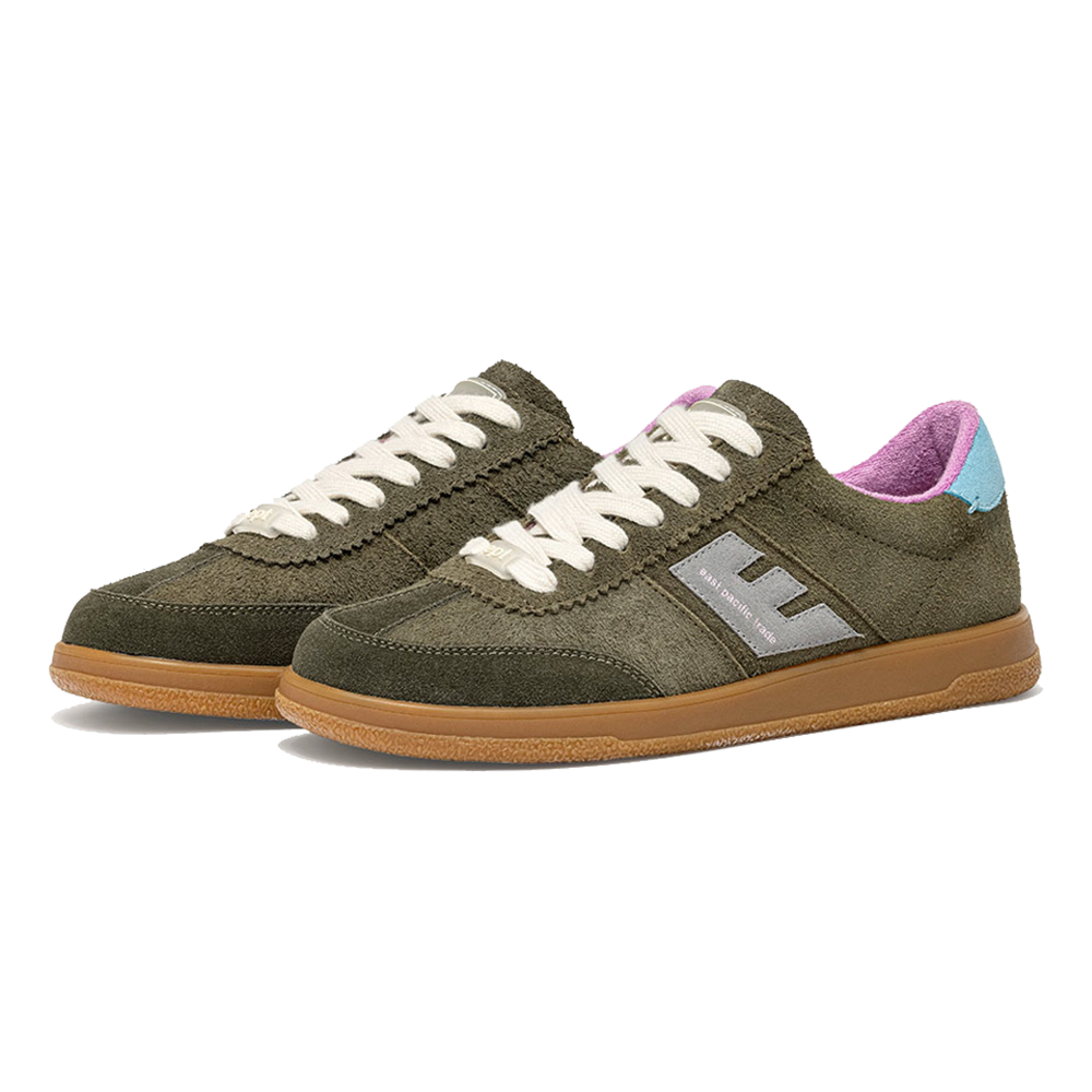 The SANTOS in olive and pink is a low-profile, retro-style trainer built for everyday wear. It features a proprietary 4-layer Dual Soft Impact Ortholite® insole with reactive EVA for ultimate comfort and cushioning, plus internal ankle padding for an extra soft fit.