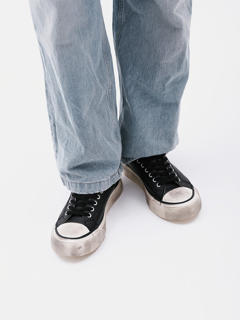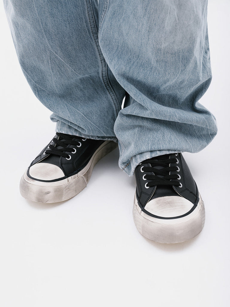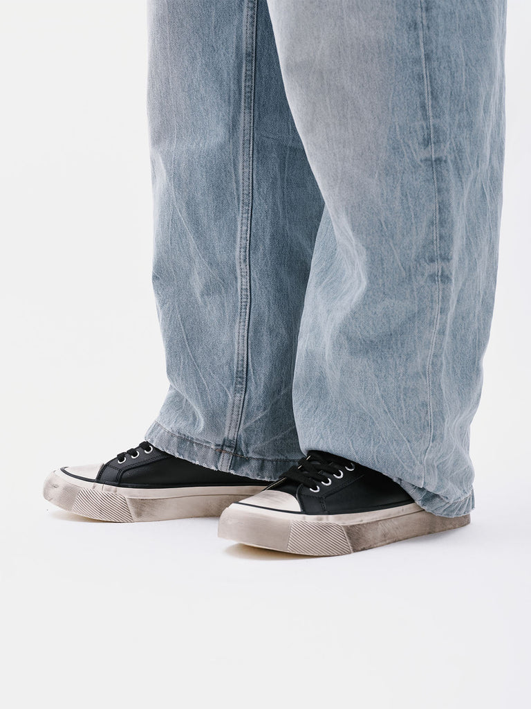 The DIVE VNTG LE in black reimagines East Pacific Trade’s signature DIVE silhouette with a worn-in, vintage aesthetic. Constructed from distressed canvas uppers and paired with a burnished outsole, it captures a timeless balance between everyday wear and subtle texture.