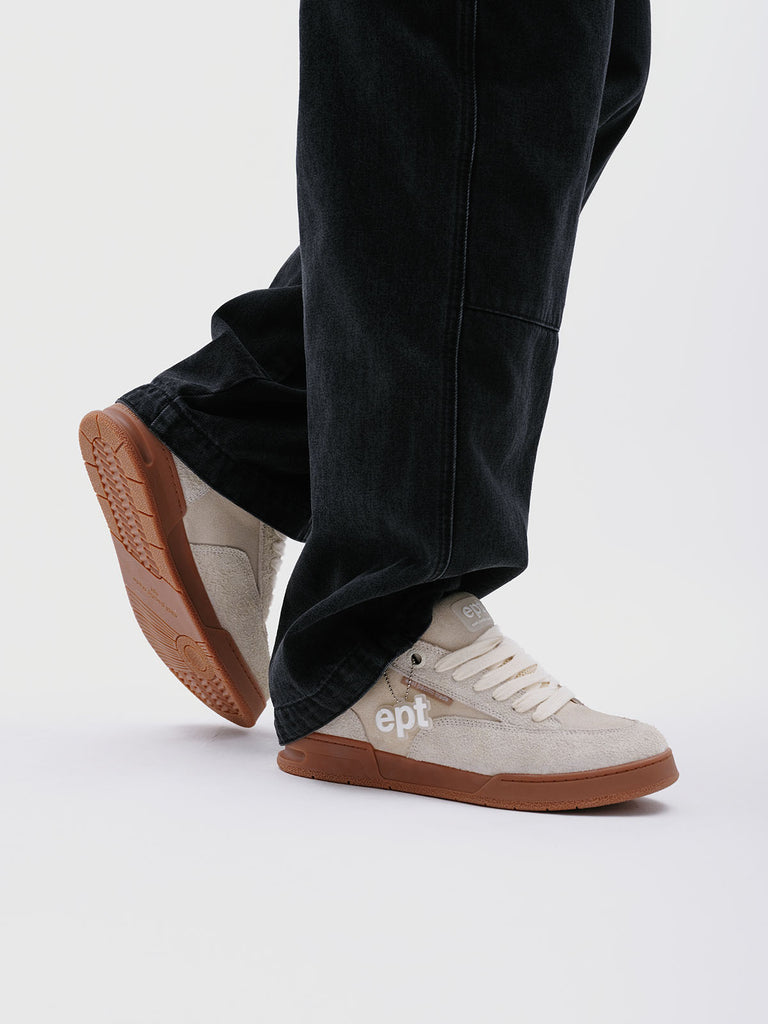 The FAT in cream delivers a true 90s-inspired silhouette — EPT’s most street-powered shoe. Designed with a signature flat lace setup and an X-TRA padded tongue, it captures the look and feel of classic mid-90s skate style. The anti-roll stability sole unit combines with proprietary DSI Ortholite® cushioning and a reactive EVA insole for impact protection and lasting comfort.