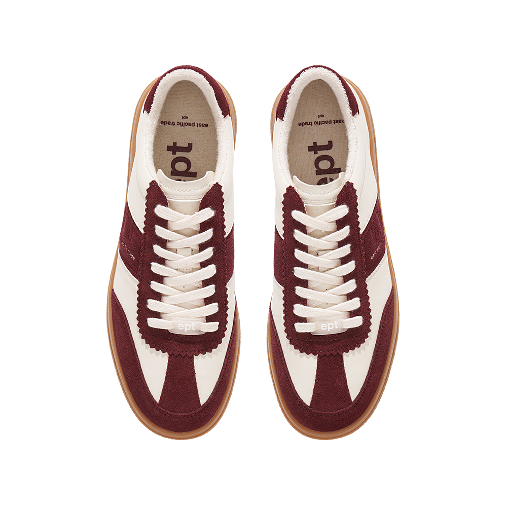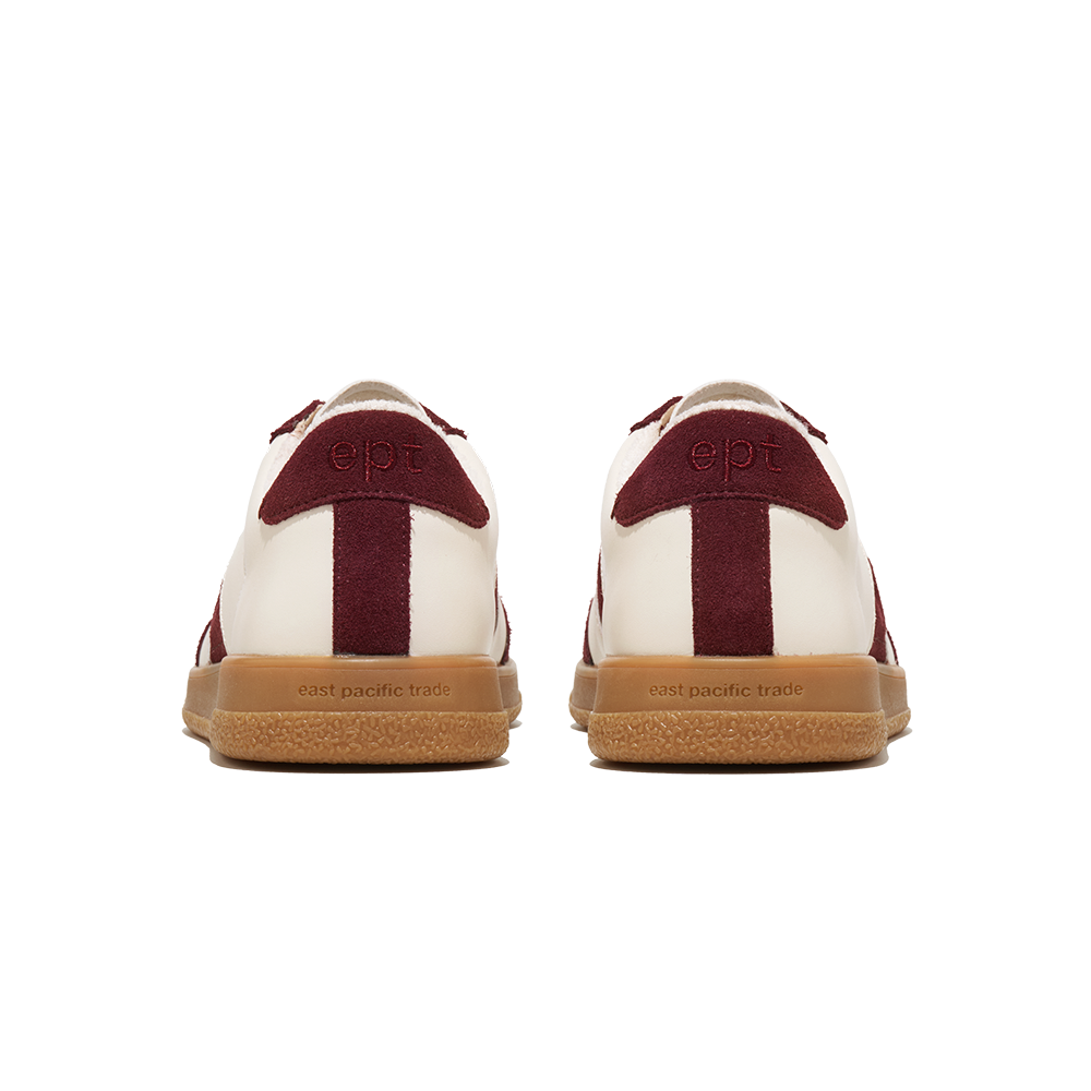 The SANTOS in tofu and burgundy blends a retro trainer silhouette with timeless everyday wearability. A fresh, neutral tofu base pairs with rich burgundy accents for a pop of understated color, while premium FG leather and suede deliver a soft, durable finish. The Ortholite 4-layer insole provides all-day comfort, and a sturdy rubber outsole ensures long-lasting wear.