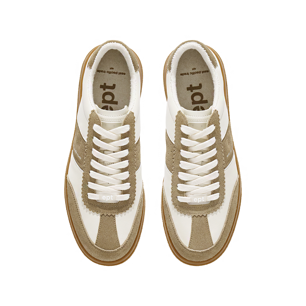 The SANTOS in tofu and tan brings a retro-inspired trainer silhouette to a versatile, everyday palette. A soft off-white (tofu) leather and suede upper is paired with warm tan accents, creating a timeless, wear-with-anything look. An Ortholite 4-layer insole ensures all-day cushioning, while the durable rubber outsole provides reliable traction.